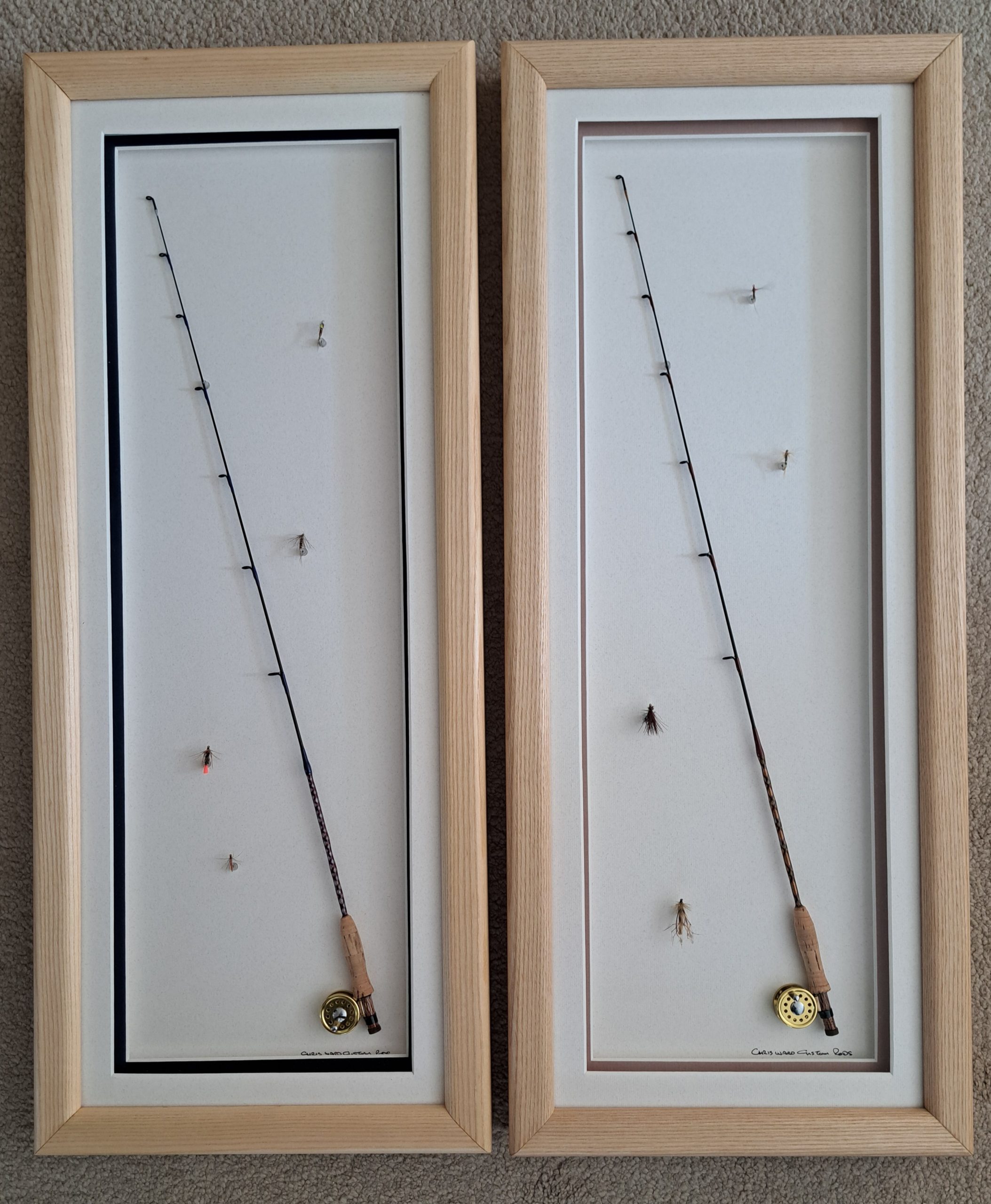 No two frames are the same. Colours, themes, and layouts can be tailored to match special memories, personal achievements, favourite waters, or an angler’s unique style. Whether it’s a celebration, a retirement gift, or simply something special to display at home, miniature rod art offers a distinctive way to honour someone’s connection to fishing.